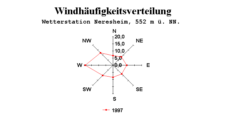 höchste Windgeschwindigkeit: 92 km/h am 14.02.1997