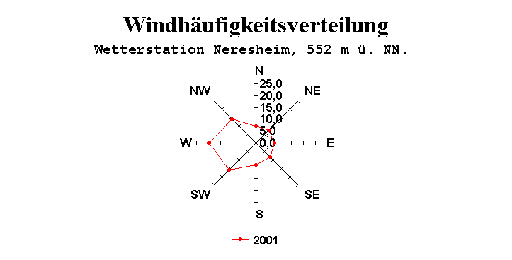 höchste Windgeschwindigkeit: 74 km/h am 06.12.2001