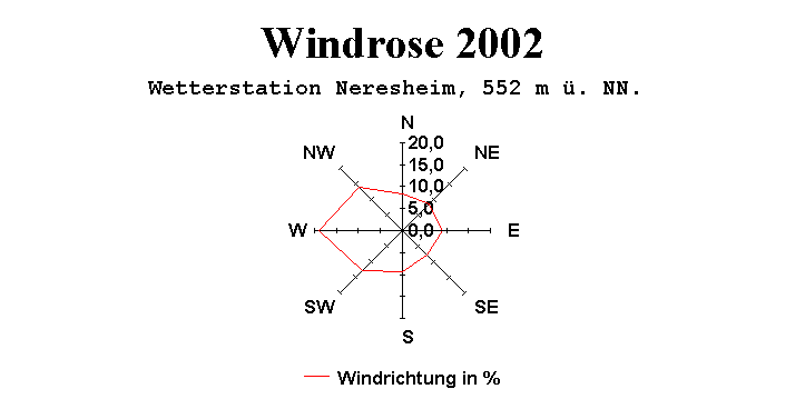 höchste Windgeschwindigkeit: 102 km/h am 27.10.2002