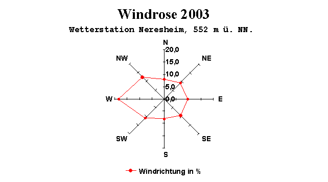 Höchste Windgeschwindigkeit: 101 km/h am 19.05.2003