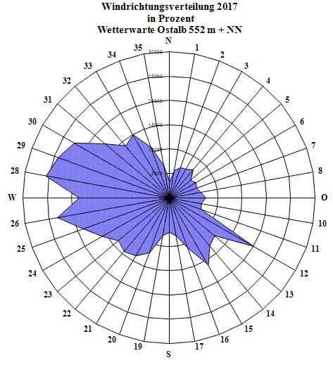 Höchste Windgeschwindigkeit: 95 km/h am 13.01.2017