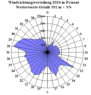 Höchste Windgeschwindigkeit: 83 km/h am 10.10.2024