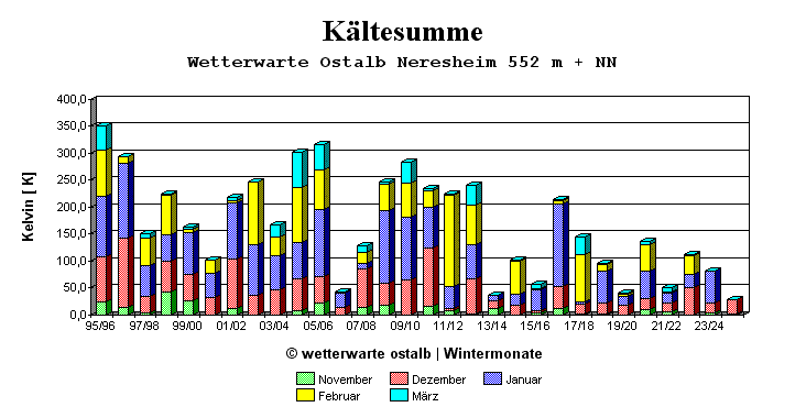 Zur Kältesumme werden alle negativen Tagesmitteltemperaturen als Absolutwert addiert.