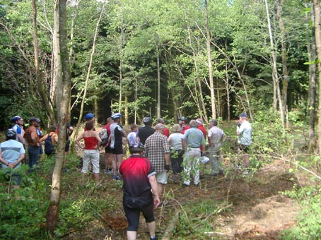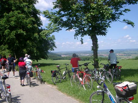 Um die Mittagszeit erreichte die Gruppe Hülen und genoss hier den imposanten Ausblick ins Albvorland bis zu den Ellwanger Bergen und den Limpurger Bergen. Nach einer längeren Mittagspause bei sehr guter Kost fuhr man durch das Kugeltal, vorbei an einer markanten Doline in das Beurener Tal. Am Naturschutzgebiet Dellenhäule wurden die Radler von Erwin Funk von der Naturschutzgruppe Vorderes Härtsfeld erwartet. Von ihm erfuhren sie, was der Namen Dellenhäule bedeutet; er führte sie in den nahen Hutewald und erklärte, was es mit der wohl größten Ameisenstadt Mitteleuropas auf sich hat.