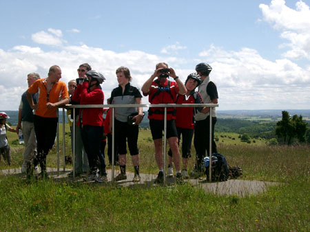 Auch wenn Pluto nicht mehr zu den Planeten gezählt wird, die Radwanderer wurden für die Anstrengung am steilen Anstieg zu diesem Punkt auf dem südöstlichen Riesrand mit einer beeindruckenden Aussicht belohnt.